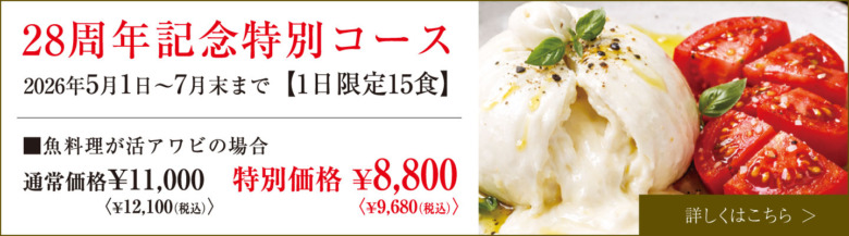 2026年4月23日「28周年記念特別コース」5月1日から7月末までの期間限定