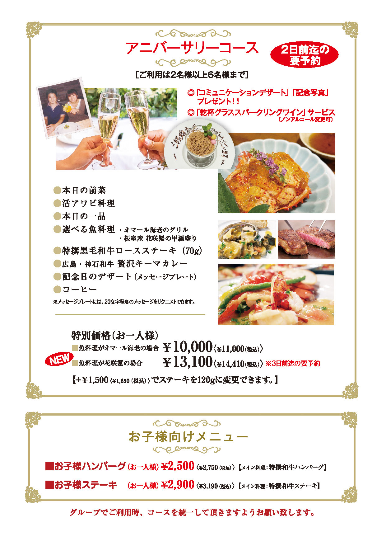 ご結婚記念日・誕生日・還暦のお祝いなど特別な日に思い出に残るコースです。