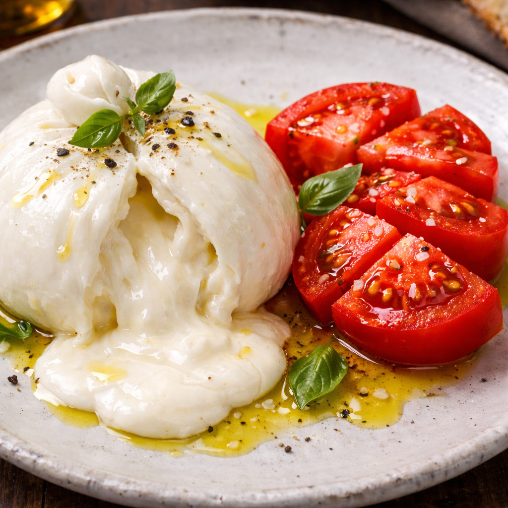 イタリア直輸入のブッラータチーズと高糖度トマトのカプレーゼは、とろけるチーズのコクと爽やかな酸味の調和が魅力。続くソフトシェルクラブのフライは、軽やかな食感と旨みを存分にお楽しみいただけます。